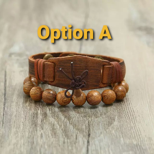 Leather bracelet & bead 2pcs set